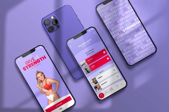 Personal trainer and best-selling author Alice Liveing wanted an app that would allow her to scale her fitness business and bring her programmes to a wider audience. There were some stipulations for the main concept - the app needed to be inclusive, accessible and educational, with the title Give Me Strength. Alice wanted to weave her philosophy through the entire product, promoting holistic wellness and building positive habits.